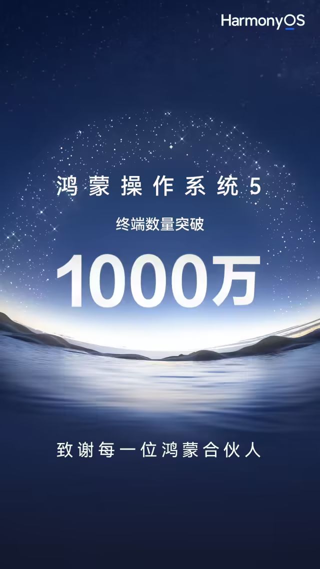 华为常务董事、终端 BG 董事长余承东发文称:“今天(7 月 30 日),鸿蒙 5 终端数量突破了 1000 万股票配资怎么配,非常感谢每一位伙伴、开发者和用户的支持和反馈!”
