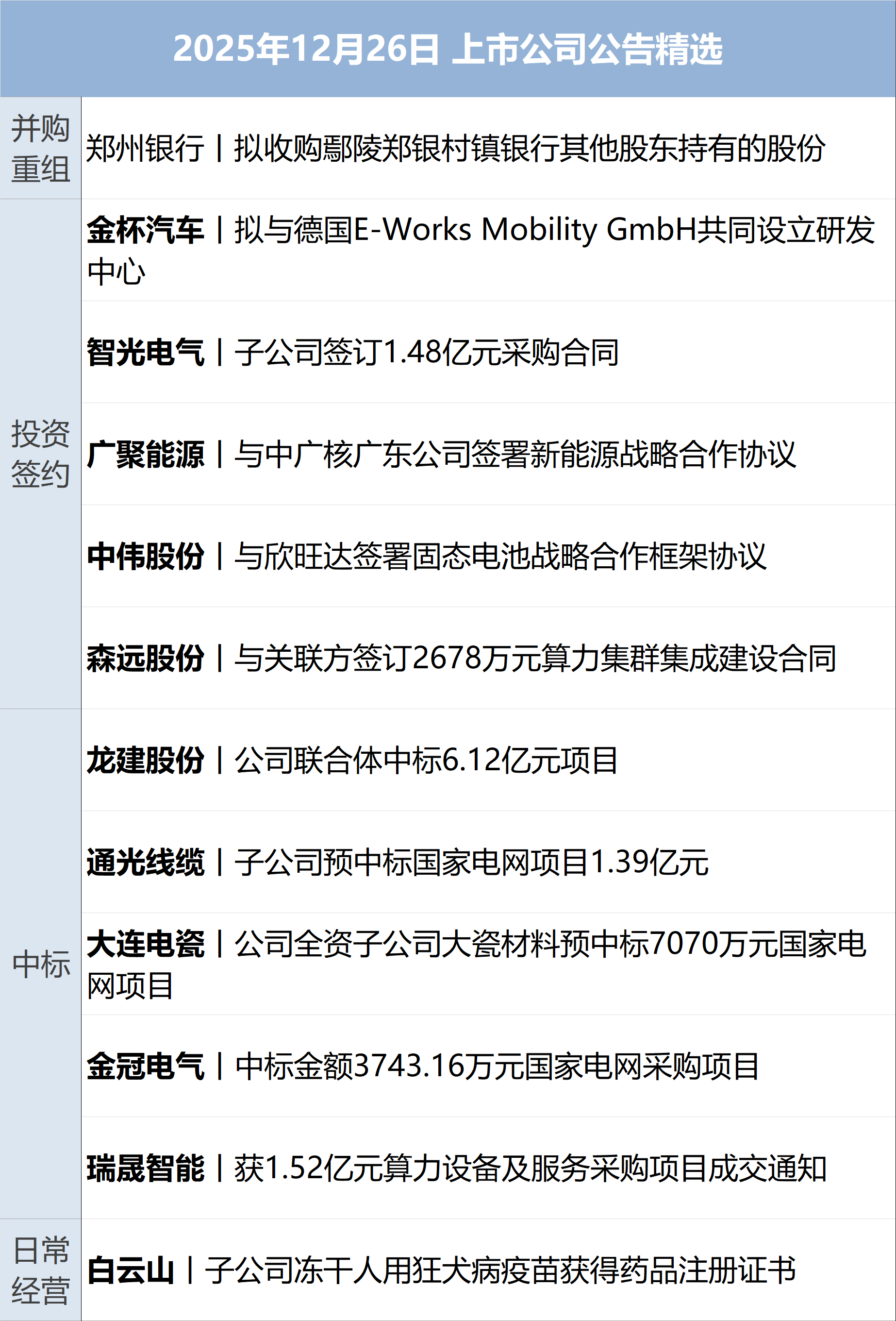 深蓝汽车:12月25日,深蓝汽车宣布完成C轮融资。本轮增资由长安汽车、重庆渝富控股集团有限公司、招银金融资产投资有限公司共同出资,资金总额达61.22亿元。